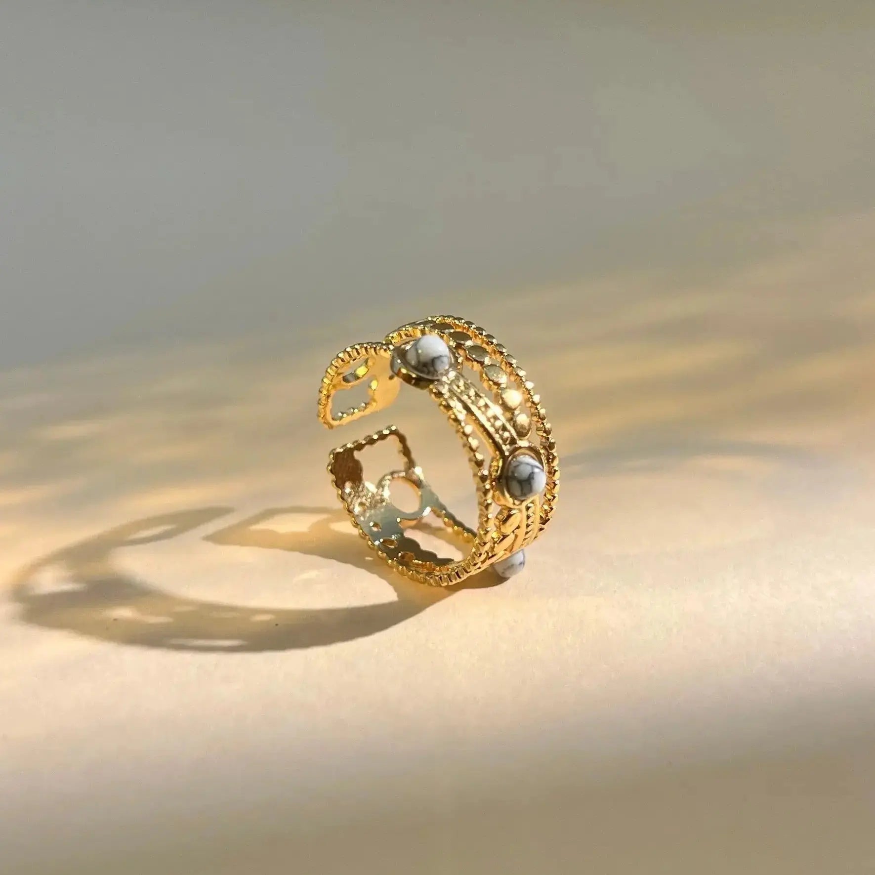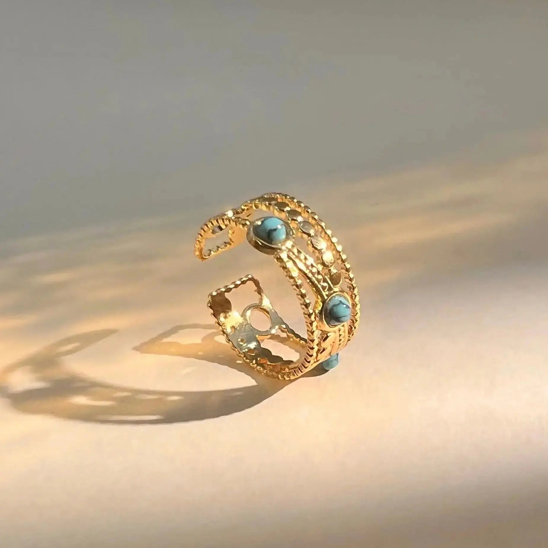 Chaque pierre, avec ses nuances et ses reflets uniques, fait de cette bague une pièce singulière. Légère et confortable, elle se porte aussi bien au quotidien que lors d’occasions spéciales.