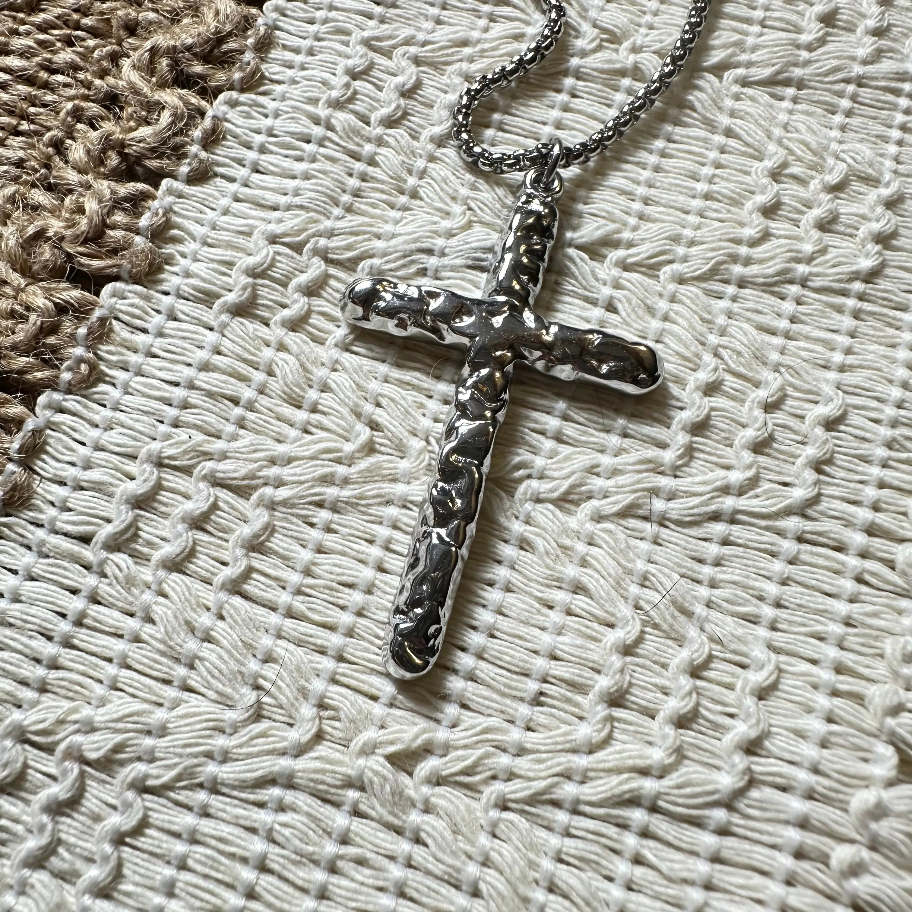 Conçu en acier inoxydable, ce collier garantit une brillance durable et une résistance parfaite au quotidien. Son pendentif croix à la texture martelée lui confère un aspect artisanal et chic, idéal pour celles qui aiment les bijoux à la fois discrets et puissants.