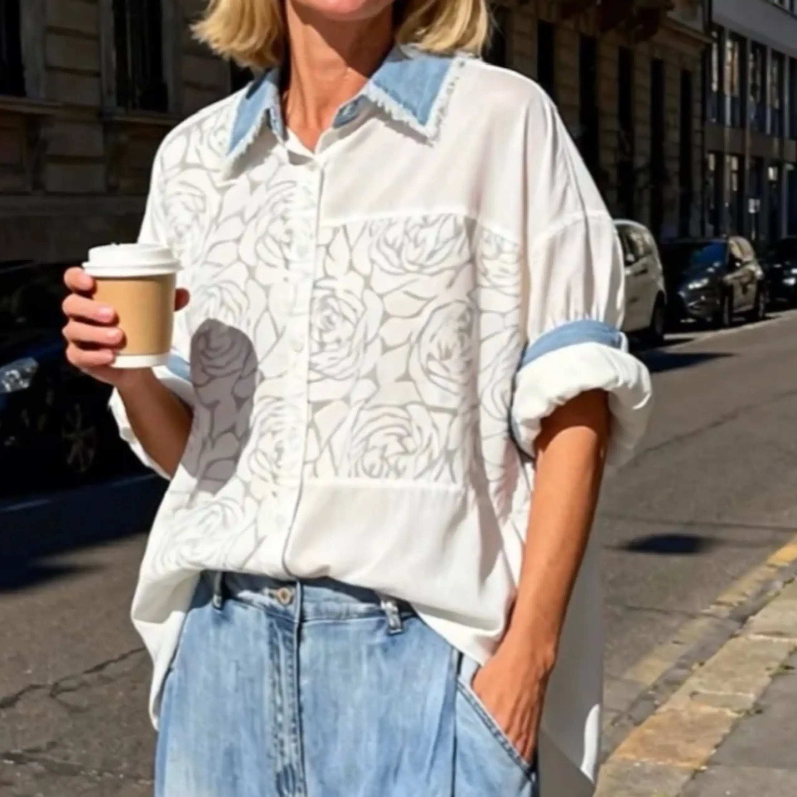 Chemise Loose Imprimé Roses – Féminité, Confort & Style Romantique