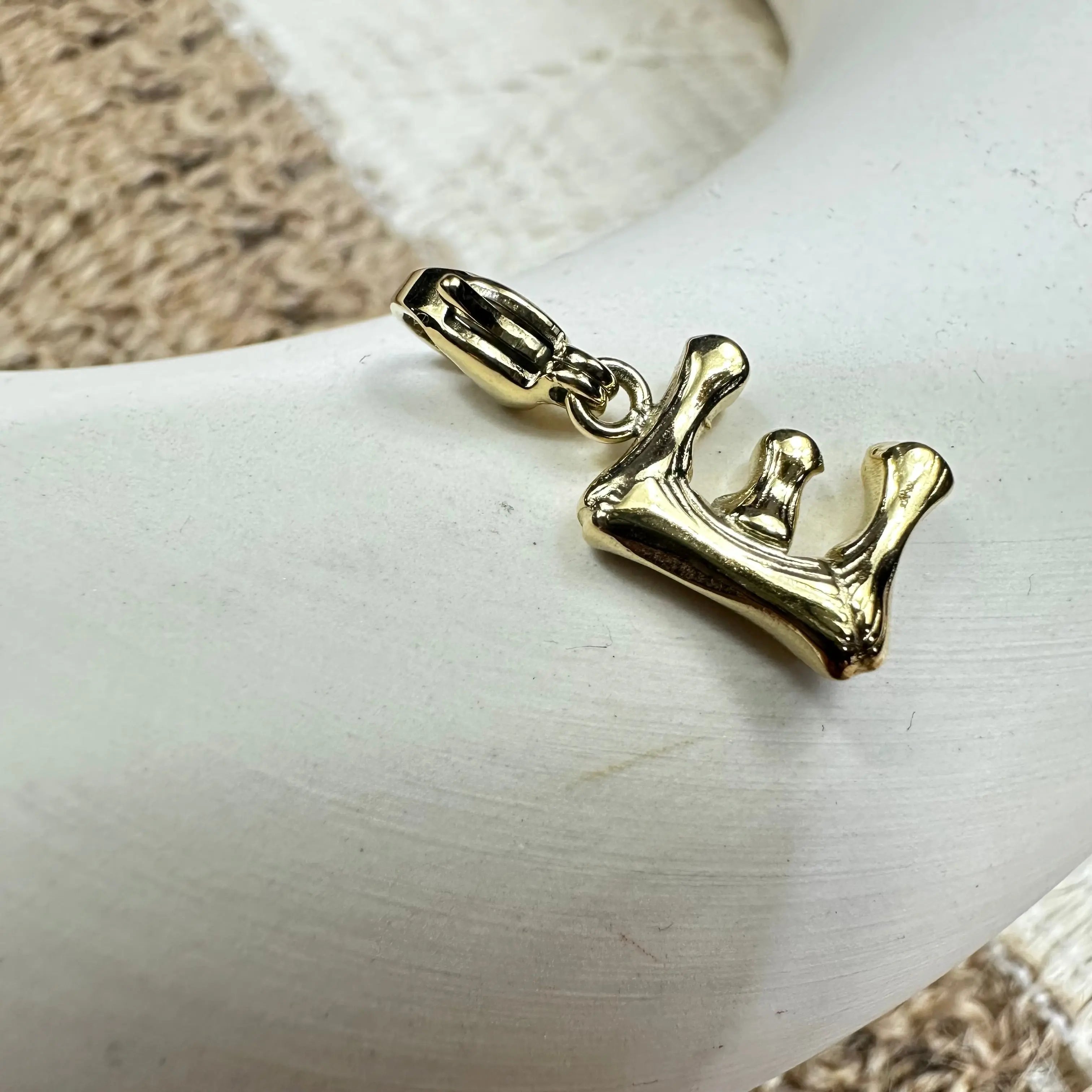 Ce charme lettre dorée séduit par son design délicat et sa finition lumineuse. Porté seul ou en accumulation avec d’autres pampilles, il permet de créer un bijou unique, chargé de sens et résolument moderne.