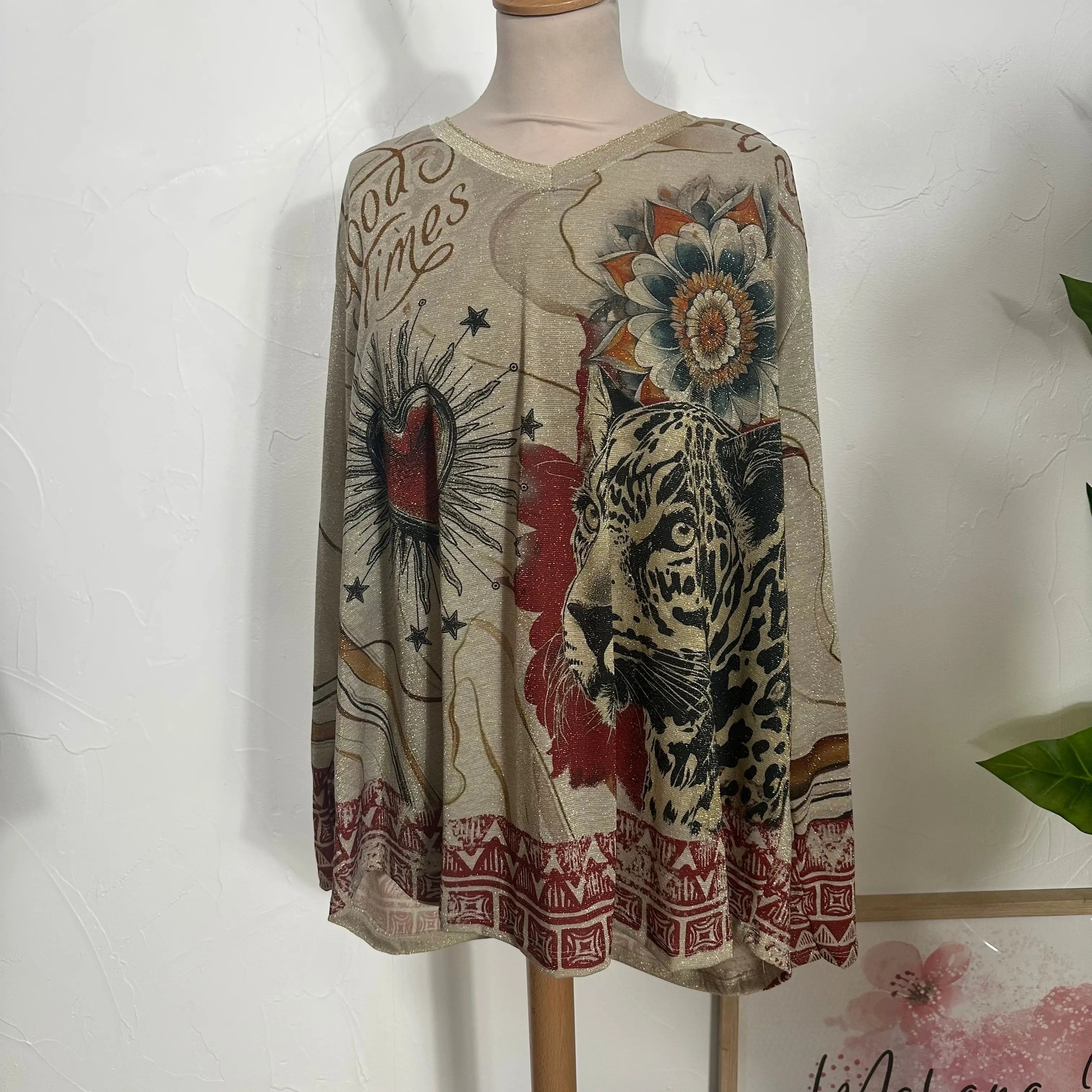 Réalisé en 95 % polyester et 5 % élasthanne, il offre souplesse, confort et une belle brillance discrète. Sa coupe ample convient aux tailles 40 à 50, avec des dimensions équilibrées (largeur 75 cm – longueur 74 cm